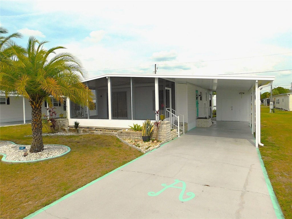 This one just keeps getting better! NEW front porch screen room has just been added to increase your living space by over 200 square feet and additional carport covered parking. Located in the desirable Betmar Acres 55+ community, this charming 2-bedroom, 2-bathroom home has been beautifully updated, offering modern comfort and style. Step inside to find brand-new laminate flooring throughout, providing both durability and elegance. Fresh new paint brightens every room, creating a warm and inviting atmosphere. The updated kitchen has some contemporary finishes, sleek cabinetry, and modern appliances, making meal preparation a delight. Both bathrooms have been upgraded to new walk-in showers, adding a touch of luxury and convenience. A new hot water heater (installed in 2025) ensures efficiency and reliability for years to come. There are washer and dryer hook-ups in the workshop. Additional shed in the back has room for your golf cart. This move-in-ready home is perfect for those seeking both style and functionality in a fresh, updated space! Home has passed inspections (which are available upon request) Let's get packing! And remember to check out the 27 hole golf course, 2 swimming pools and 2 hot tubs along with 3 clubhouses, a library, walking paths, game rooms , enclosed shuffleboard courts, tennis courts, pickle-ball courts, basketball court, and weekly cash Bingo. Don’t miss out on this one!