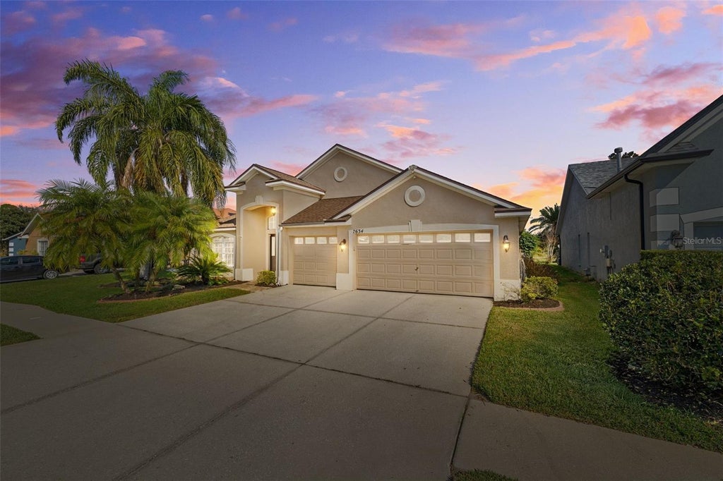 Seller is offering $5,000 in concessions with an acceptable offer - buyers can use this $5,000 to cover closing costs and/or a interest rate buy down. Welcome to the Florida lifestyle you’ve been dreaming of. This 4-bedroom, 3-bathroom home with a 3-car garage and private pool has it all, and all the big-ticket upgrades are DONE. With a new roof (2019), brand-new AC (2023), newer water heater, and a fully resurfaced pool with brand-new plumbing (2023), you can move right in and start living. Step inside through grand double doors and you’re immediately welcomed by soaring vaulted ceilings and rich hardwood floors. The layout is open and inviting, with a kitchen that features upgraded Samsung stainless steel appliances, tons of cabinet space, and connects to a eat-in nook and family room. Light floods the space from oversized sliders that lead you straight to the star of the show—your screened-in lanai and sparkling pool overlooking a peaceful pond. No sharing a fence with your rear neighbors! Why wait months to build a pool or settle for a crowded community one? This backyard is ready for you now and summer is right around the corner. Whether it's a quiet morning coffee, a Saturday pool party, or a sunset dinner, this home lets you entertain effortlessly and make the most of every day. The primary suite is a peaceful escape, tucked privately at the back of the home, complete with a spa-style bathroom featuring dual vanities, a walk-in shower, oversized soaking tub, and a walk-in closet with built-ins. Three additional bedrooms and two full baths—one with direct lanai access—make it easy to host guests or stretch out comfortably. Located in Covington Park, you’ll also enjoy access to community amenities like a clubhouse, gym, playgrounds, and walking trails—but with your own pool you may never need to leave your backyard. Builders might offer incentives, but they can’t beat this location, this condition, and this kind of lifestyle—no delays, no upgrades needed, and no sharing your space. Bring your beach towel and move right in!